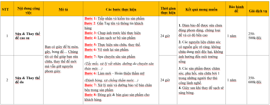 Đối với những kiểu giày cần sửa, thay đế da, chúng tôi chỉ cung cấp một loại: TỐT NHẤT! Sản phẩm đế mà chúng tôi sử dụng cho giày dép nam và nữ được nhập khẩu từ một công ty độc quyền.