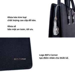 Nổi bật trên những đường vân da ấn tượng đó là logo Bill’s Corner được gắn vào chính giữa. Màu sắc logo bắt mắt với kích thước hợp lý giúp tăng độ nhận diện thương hiệu.